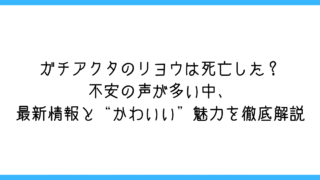 ガチアクタの人気キャラ「リヨウ」に死亡説は本当?最新話の生存情報、死亡説が出た理由、そしてファンを惹きつける“かわいいギャップ”の正体まで徹底解説。声優・花守ゆみりの演技、今後の展開予想も紹介。リヨウ推し必見の総合まとめ。